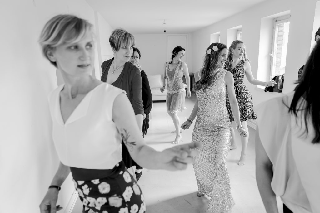 Die Choreografie zum Lieblingslied der Braut ist einfach aufgebaut, so dass alle nach 90 Minuten die Schritte beherrschen. Als Überraschung am Tag der Hochzeit ist dieser Programmpunkt ein Highlight für Bräutigam und Gäste. Um die gelernten Schritte nicht zu vergessen oder als Erinnerung, filme ich gerne die fertige Choreografie am Ende des Workshops. Jeder Song ist möglich.